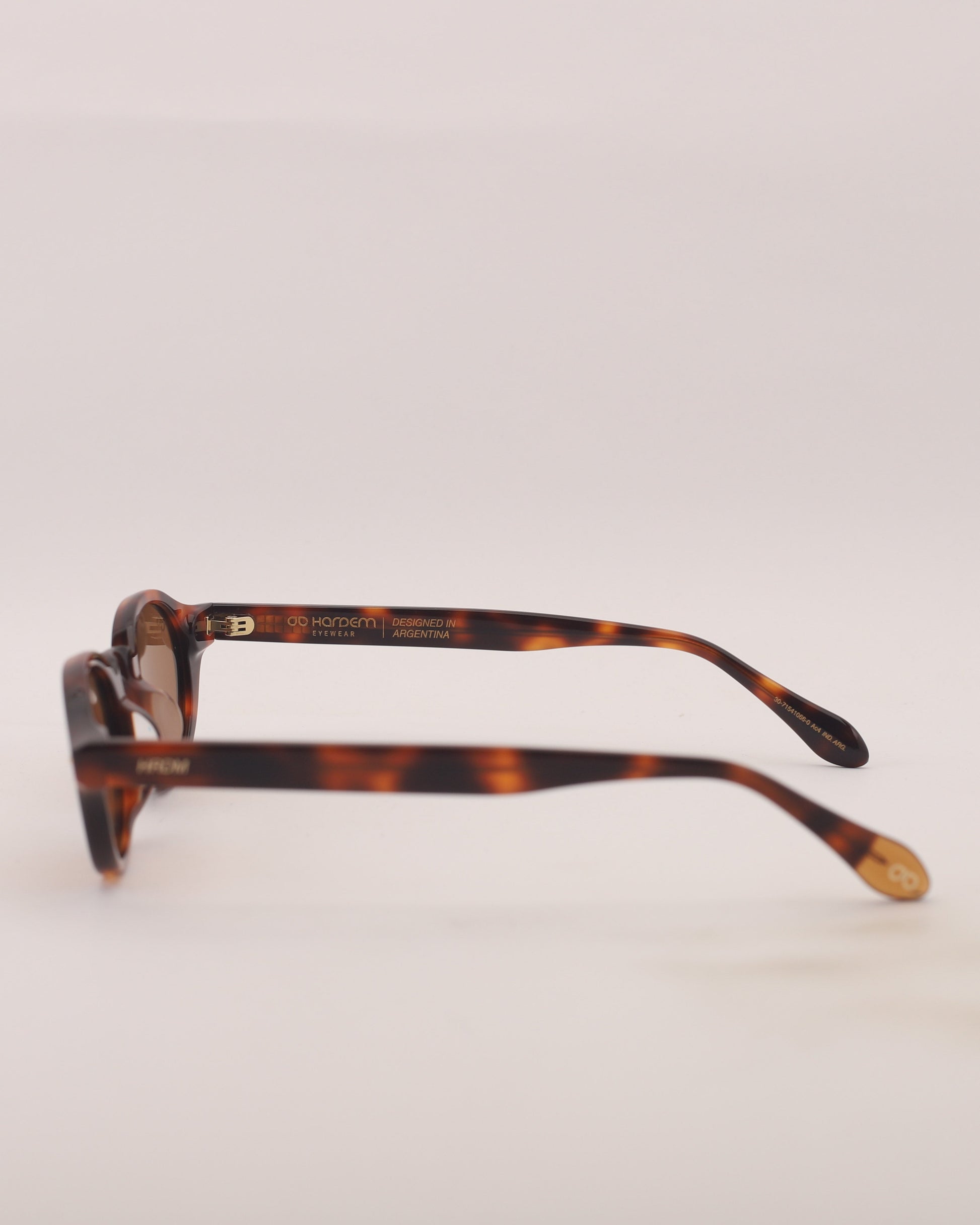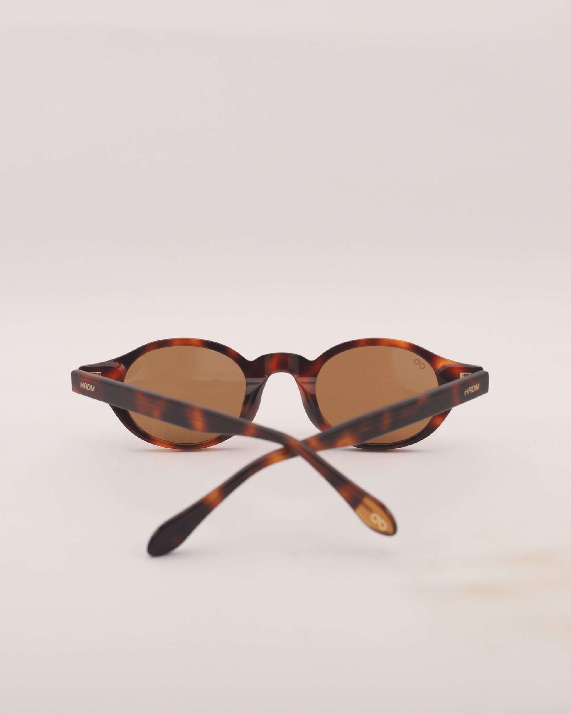 Sunglasses made of acetate with a glossy tortoiseshell front and temples. Compact brown lenses with UV 400 protection and polarization.